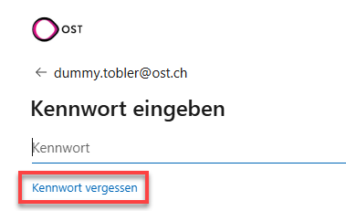 - Melde dich mit deinem OST Account an, klicke auf Kennwort vergessen: