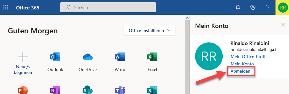 Falls du schon mit einem anderen Office 365 Account angemeldet bist, musst du dich zuerst abmelden. Danach kannst du auf Dieses Konto vergessen klicken und dich wieder anmelden: