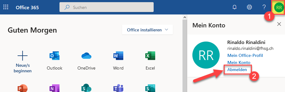 Falls du schon mit einem anderen Office 365 Account angemeldet bist, musst du dich zuerst abmelden. Danach kannst du auf Dieses Konto vergessen klicken und dich wieder anmelden:
