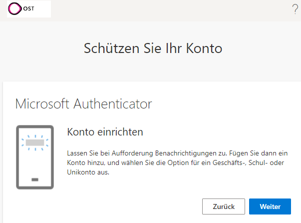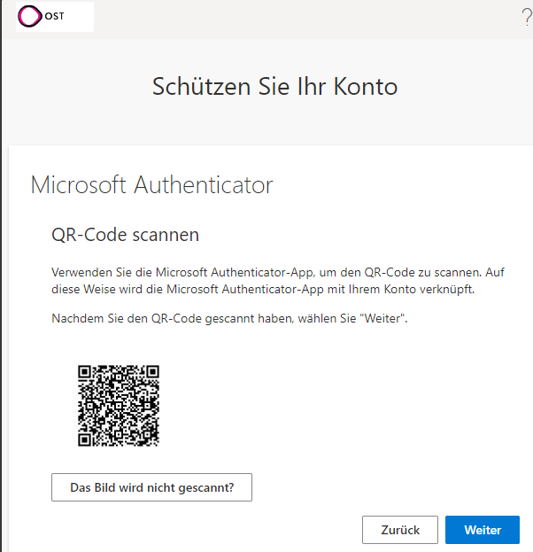- Klicke auf Weiter installiere den Microsoft Authenticator auf deinem Smartphone und klicke dann im Browser auf Weiter