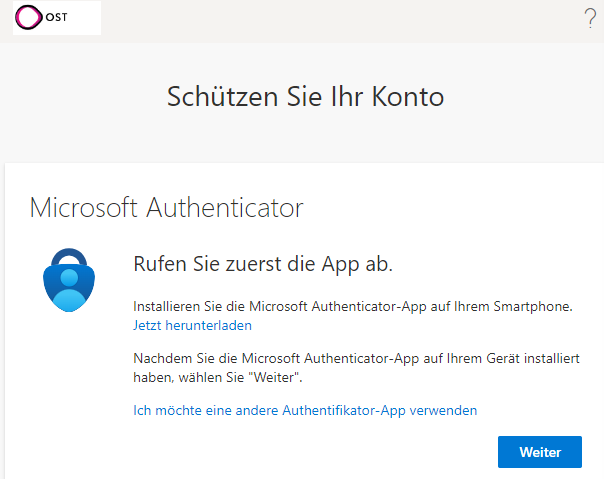 Wenn du dich das erste Mal bei Microsoft 365 anmeldest, musst du dich neben der Eingabe deines OST Passworts mit einer zusätzlichen Methode authentifizieren. Halte bitte für die folgende Anleitung dein Mobiltelefon bereit!
